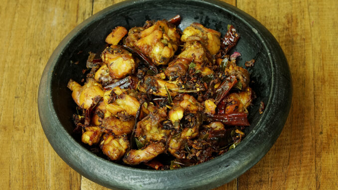 നാടൻ ചില്ലി–ജിൻജർ ചിക്കൻ 1.ചിക്കൻ – ഒരു കിലോ 2.ഇഞ്ചി – രണ്ടരയിഞ്ചു കഷണം, ചതച്ചത് 3.വറ്റൽമുളക് – 18 മഞ്ഞൾപ്പൊടി – ഒരു ചെറിയ സ്പൂൺ....