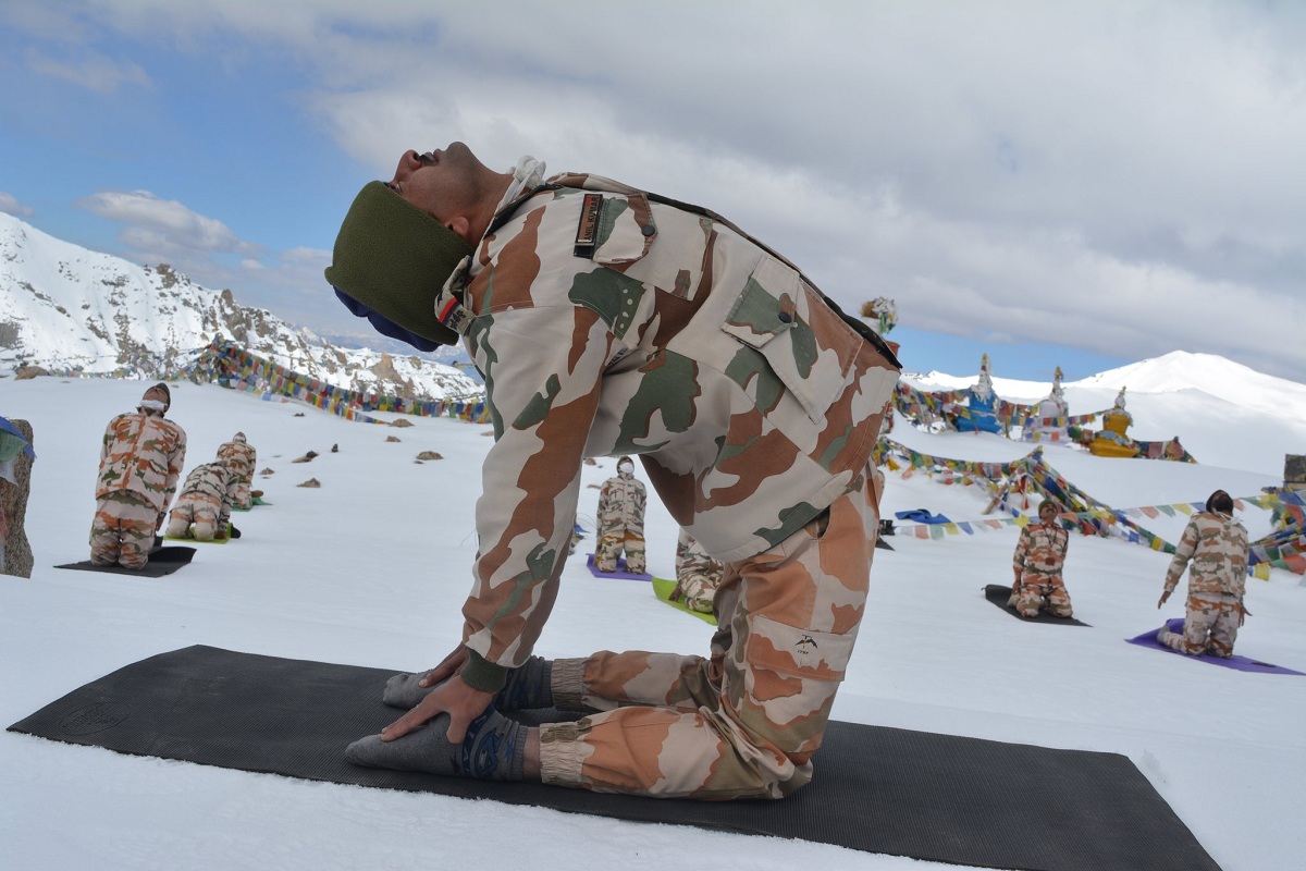 ഉത്തരാഖണ്ഡിലെ ഹിമാലയത്തില് 22,850 അടി ഉയരത്തില് കനത്ത മഞ്ഞ്വീഴ്ച്ചയ്ക്കിടെ യോഗ ചെയ്ത് ഇന്തോ-ടിബറ്റന് ബോര്ഡര് പോലീസ് (ഐടിബിപ....